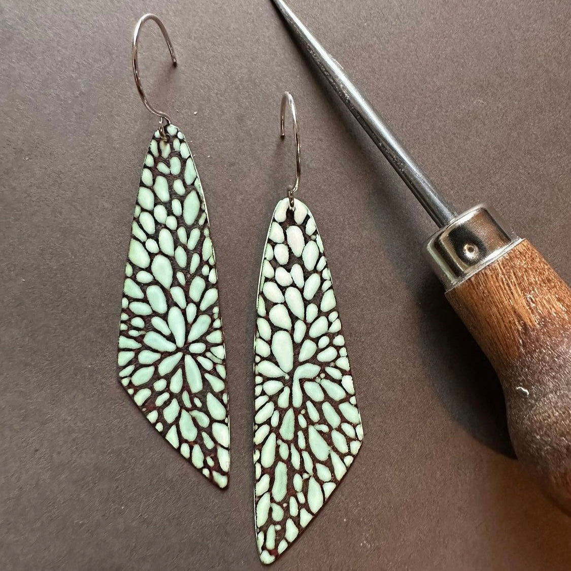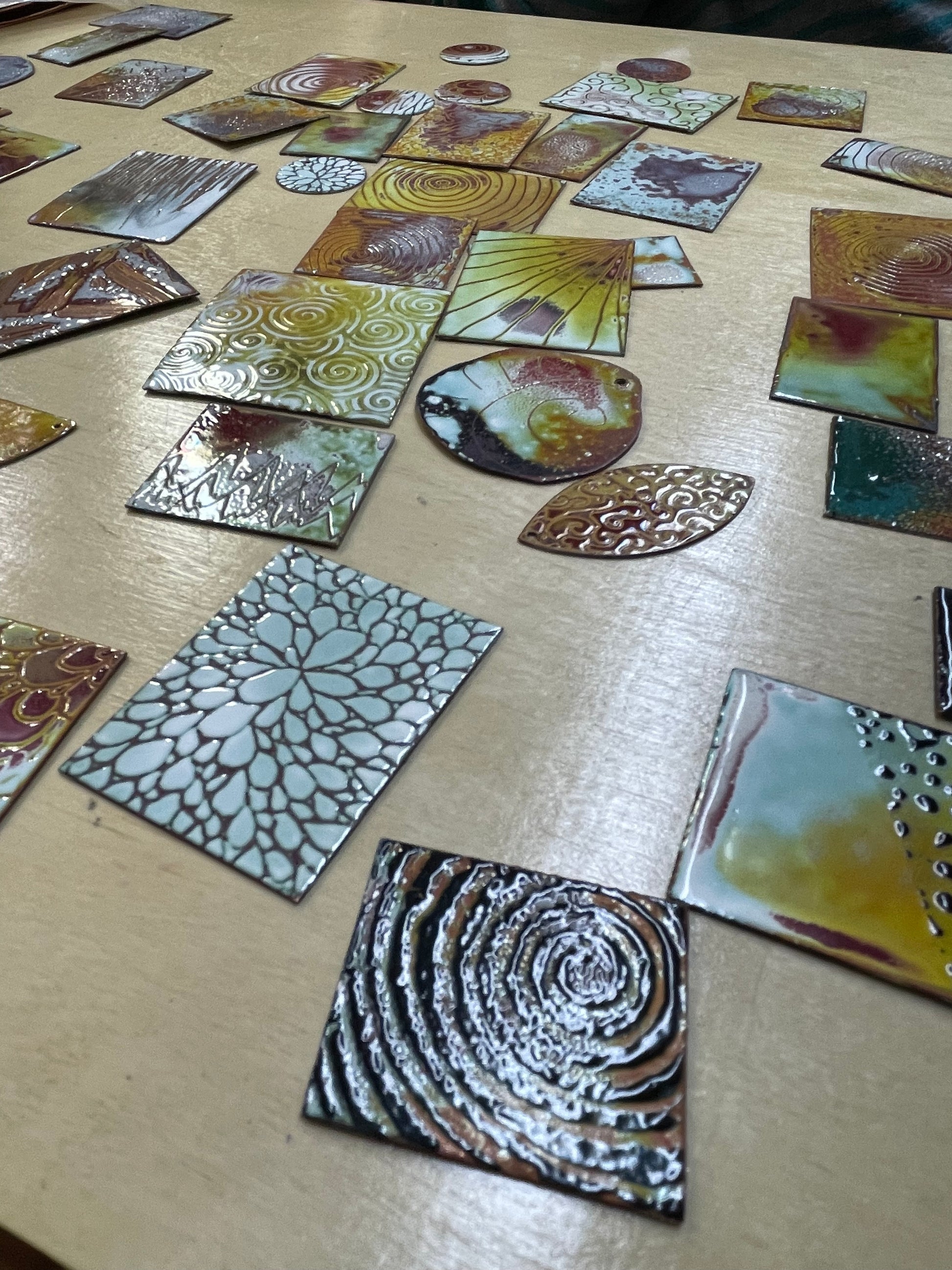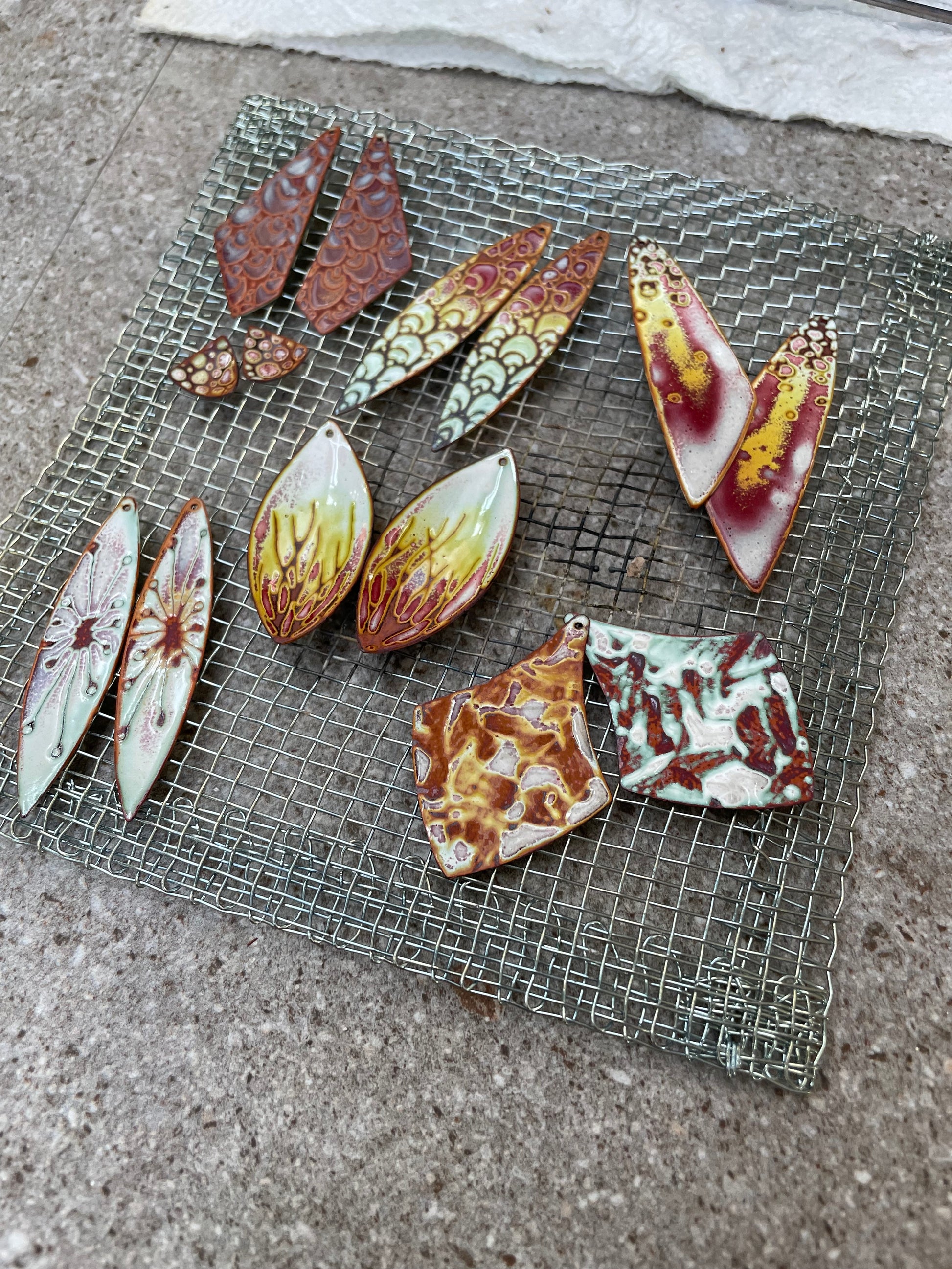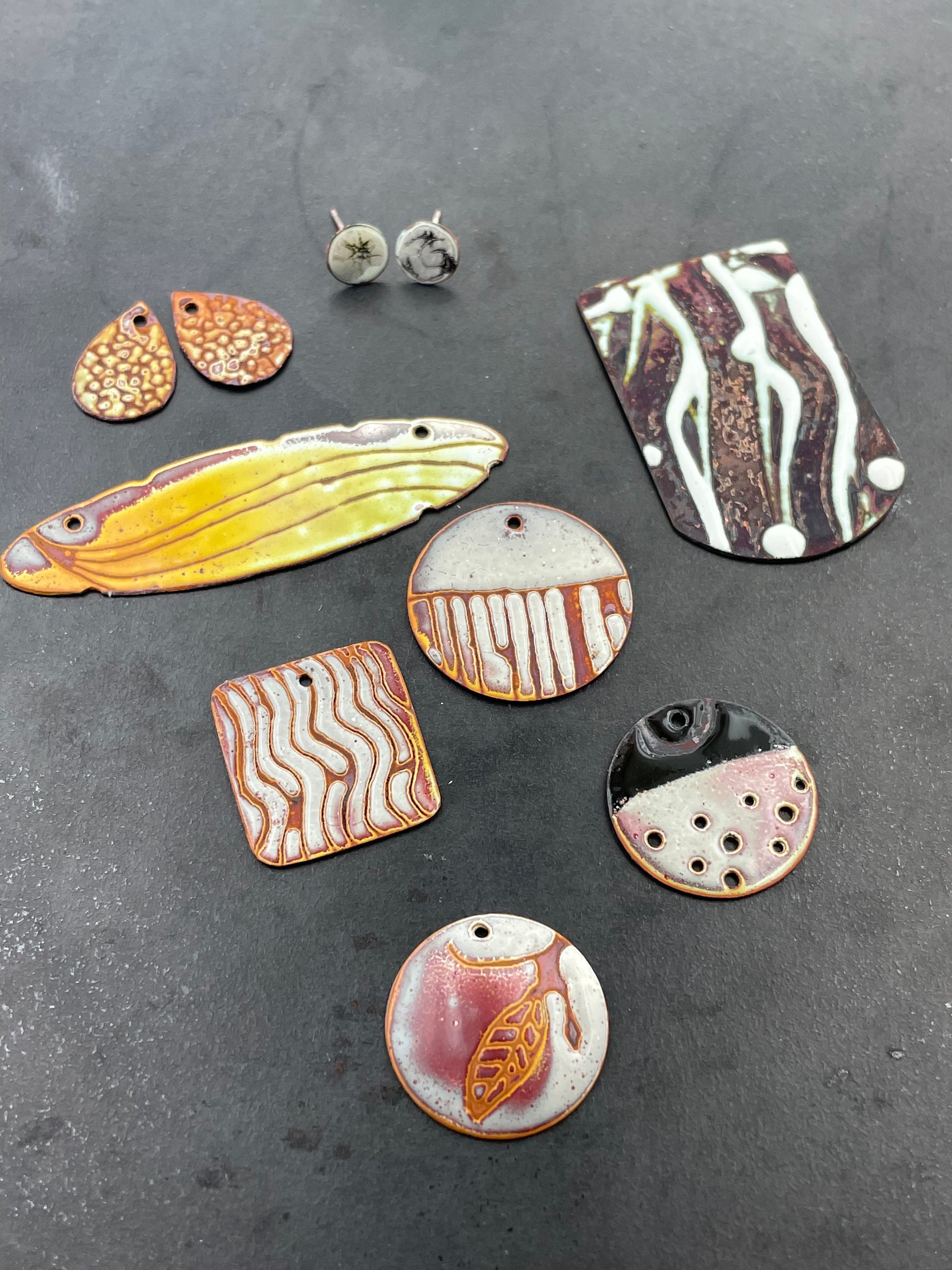 In this fun and colorful workshop, students will learn how to create one-of-a-kind enamel pieces using liquid from white enamel on copper. We will discuss enamel consistency, application, sgraffito designs, and try both kiln firing, and torch firing. As we explore the possibilities, we will create several sample pieces and you will see how this contemporary enameling technique allows for the unique and interesting addition of color to jewelry designs by adding extra heat.